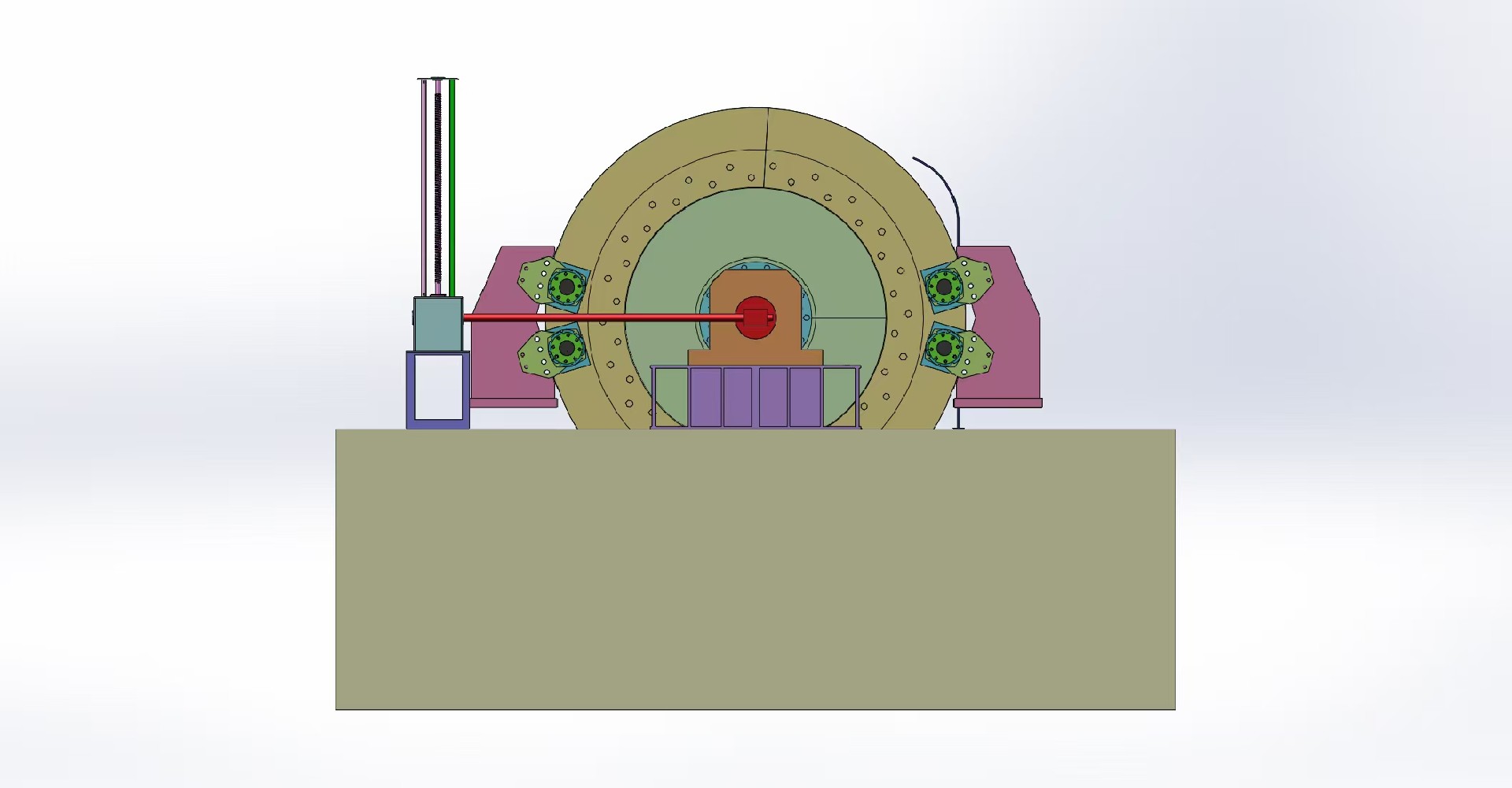 永磁電機(jī)簡述,電機(jī)定子由外殼、鐵芯和繞組組成。帶有繞組的定子鐵芯直接熱套在定子殼體內(nèi)。定子鐵芯由高質(zhì)低耗的電氣硅鋼片沖疊而成,每片硅鋼片的兩面通過耐熱無機(jī)涂層進(jìn)行絕緣。整個定子鐵芯在鐵芯兩端用鋼環(huán)壓緊。線圈和外沿形成了堅固且耐用的結(jié)構(gòu),能承受住因突然短路和突發(fā)負(fù)荷變化而產(chǎn)生的沖擊。絕緣等級設(shè)計成F級,即很大熱點溫度限制在155℃。轉(zhuǎn)子由轉(zhuǎn)子支架、熱套于轉(zhuǎn)子上的鐵芯、和安裝于鐵芯內(nèi)的永磁體組成。轉(zhuǎn)子軸由鍛造鋼支撐,并精加工到精確的規(guī)格。轉(zhuǎn)子鐵芯由硅鋼片沖疊而成,沖疊在兩片厚鋼片之間。幾個鋼棒軸向穿過硅鋼片,固定于端鋼片上,以便使沖疊結(jié)構(gòu)更加緊密、鐵芯更加堅固。勵磁能量由安裝在轉(zhuǎn)子鐵芯內(nèi)的永磁體提供。無需任何的外部連接。永磁材料是基于機(jī)械、發(fā)熱和磁能退磁要求來選擇的,并能夠保證持續(xù)提供提升機(jī)工作需要的扭矩大小。